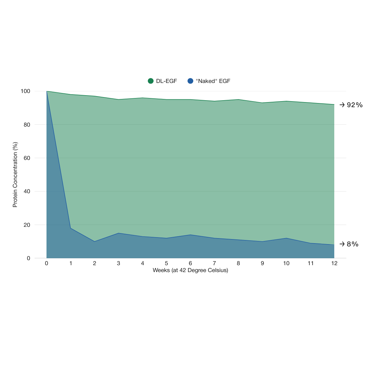 The most studied skin cell activator. Key activator of fibroblasts to produce collagen and elastin, accelerating damage repair and cell regeneration. Most EGF can't penetrate the top layer of skin to work underneath. DL-01 contains EGF with a propriatry delivery system to ensure optimal bioavailability.